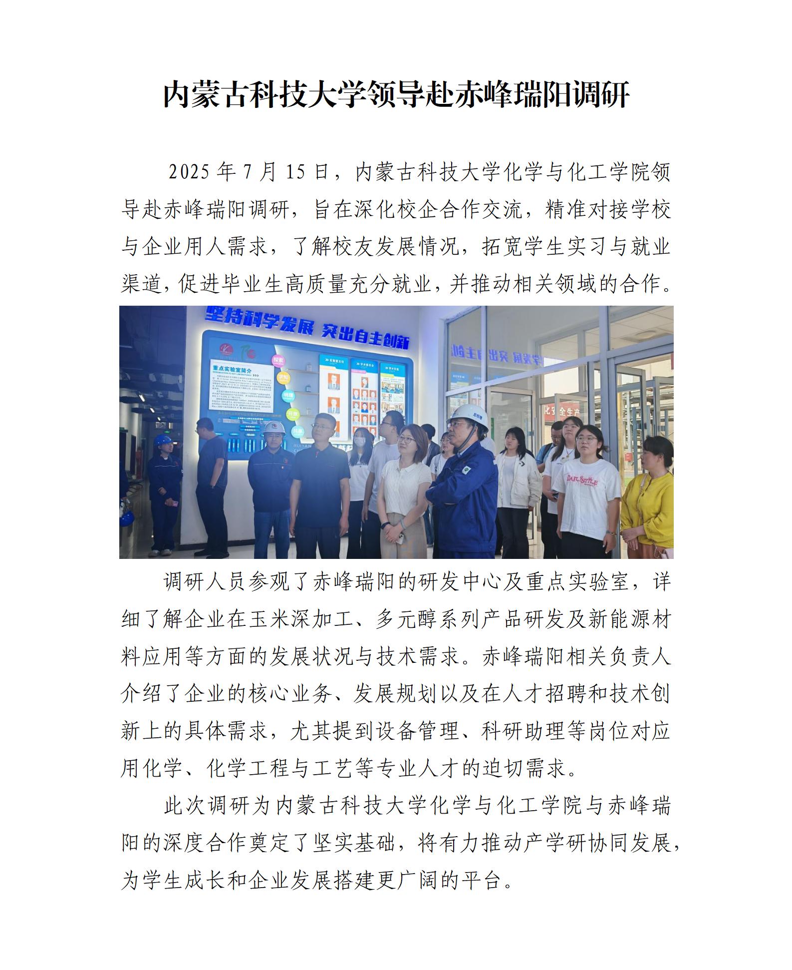 內(nèi)蒙古科技大學(xué)領(lǐng)導(dǎo)赴赤峰瑞陽調(diào)研